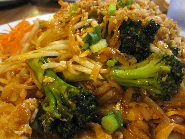 Chick pad Thai with broccoli. I asked for less sauce since pad thai has so much sugar, but this dish is still about 800 Cal.
